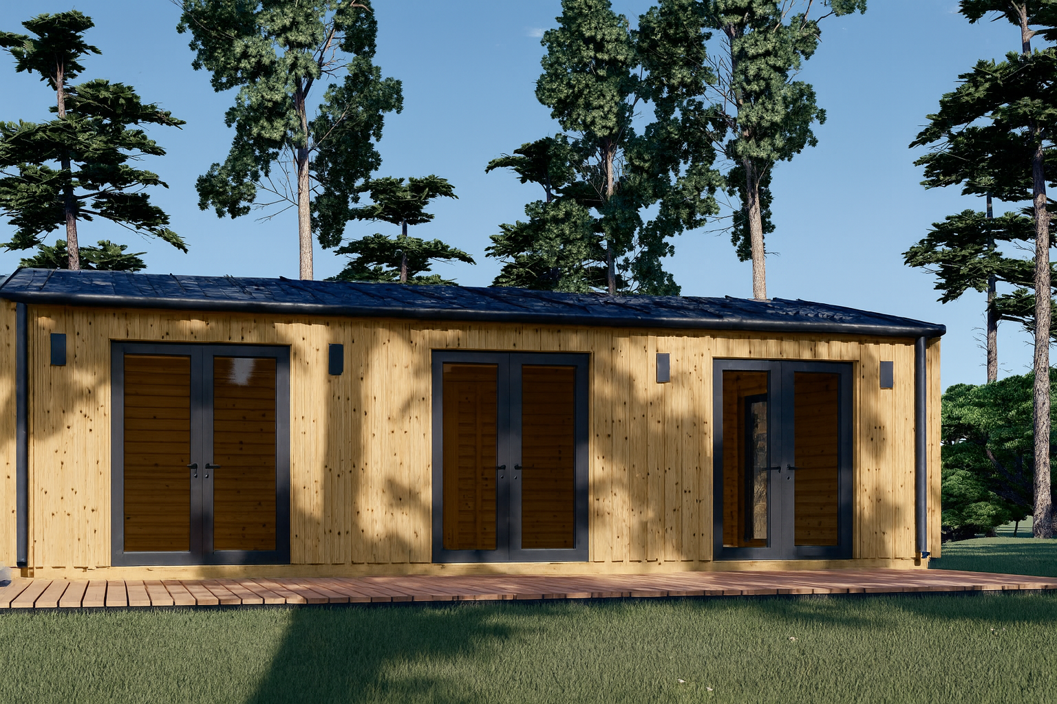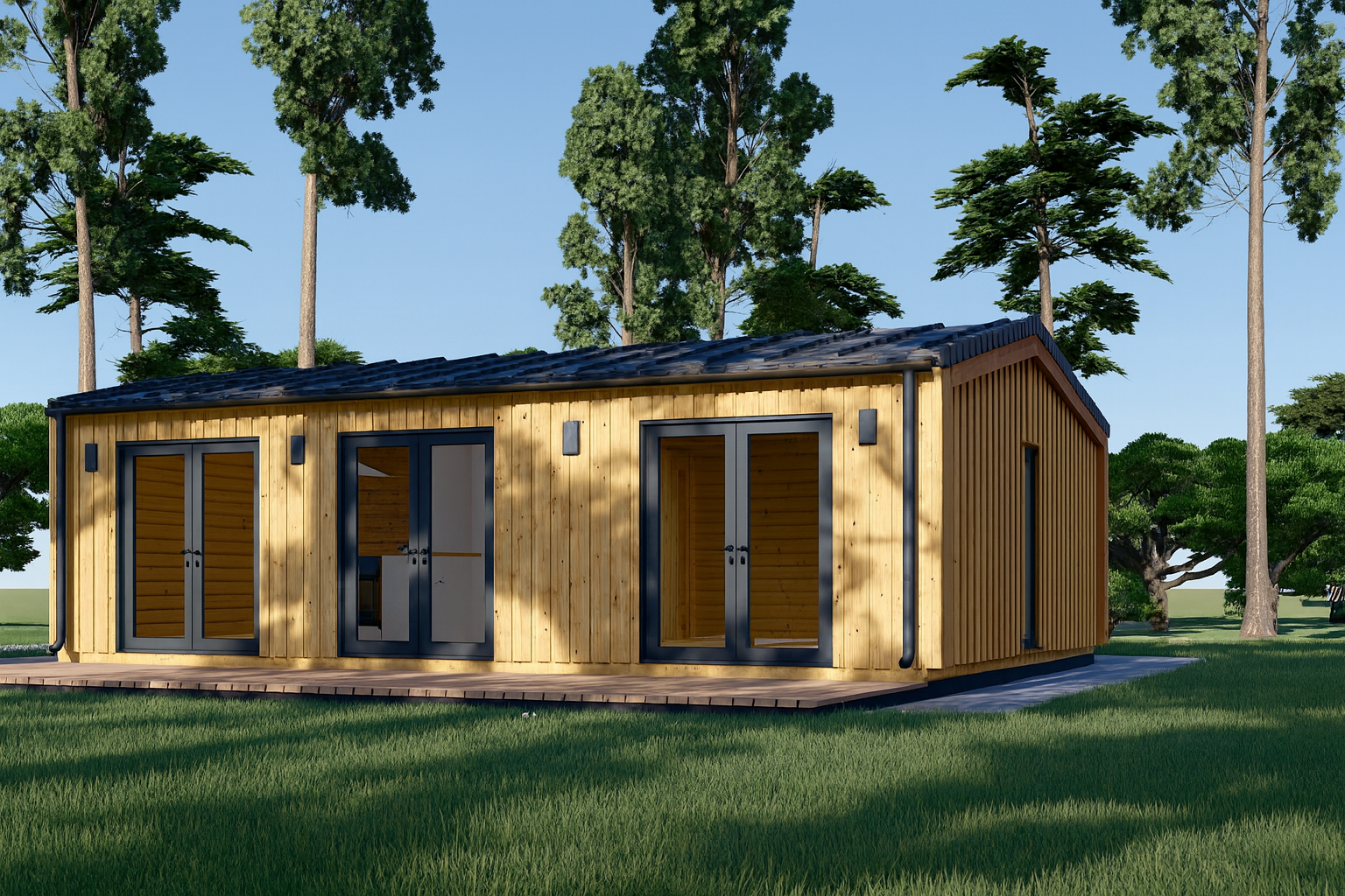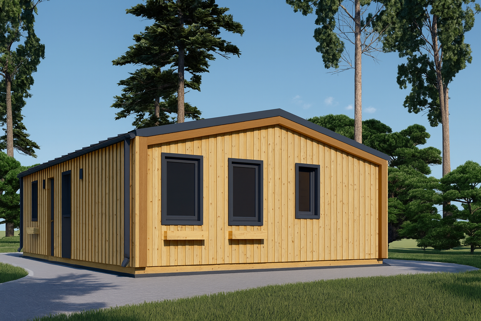 Die hochwertige Holzverschalung verleiht ANGELIKA einen exklusiven, modernen Look – ein optisches Highlight in jedem Garten oder auf Ihrem Feriengrundstück.