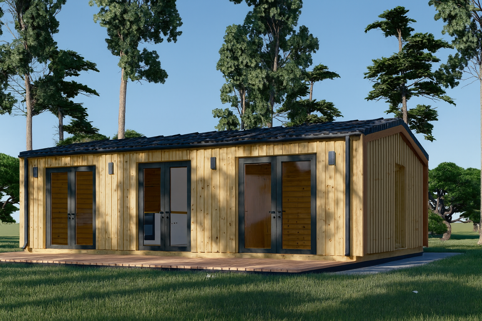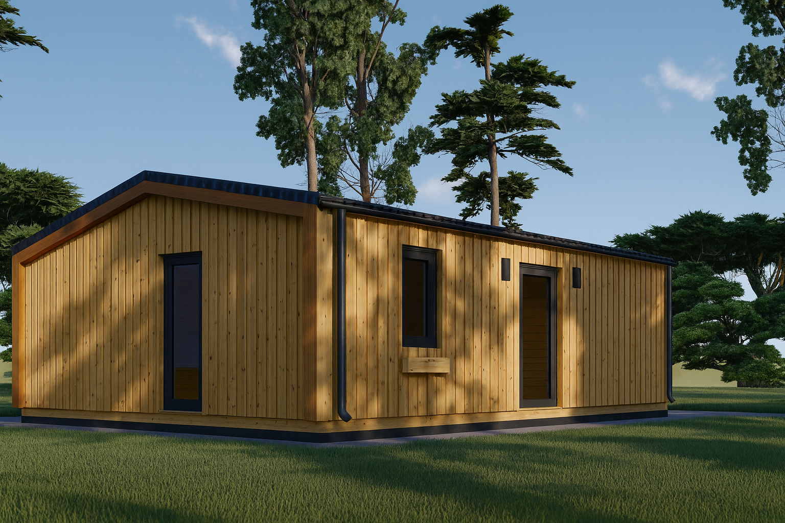 Ob als gemütliches Gästehaus, Rückzugsort für Angehörige oder als eigener Wohnraum – dieses Modell ist vielseitig einsetzbar und fügt sich harmonisch in jede Umgebung ein.