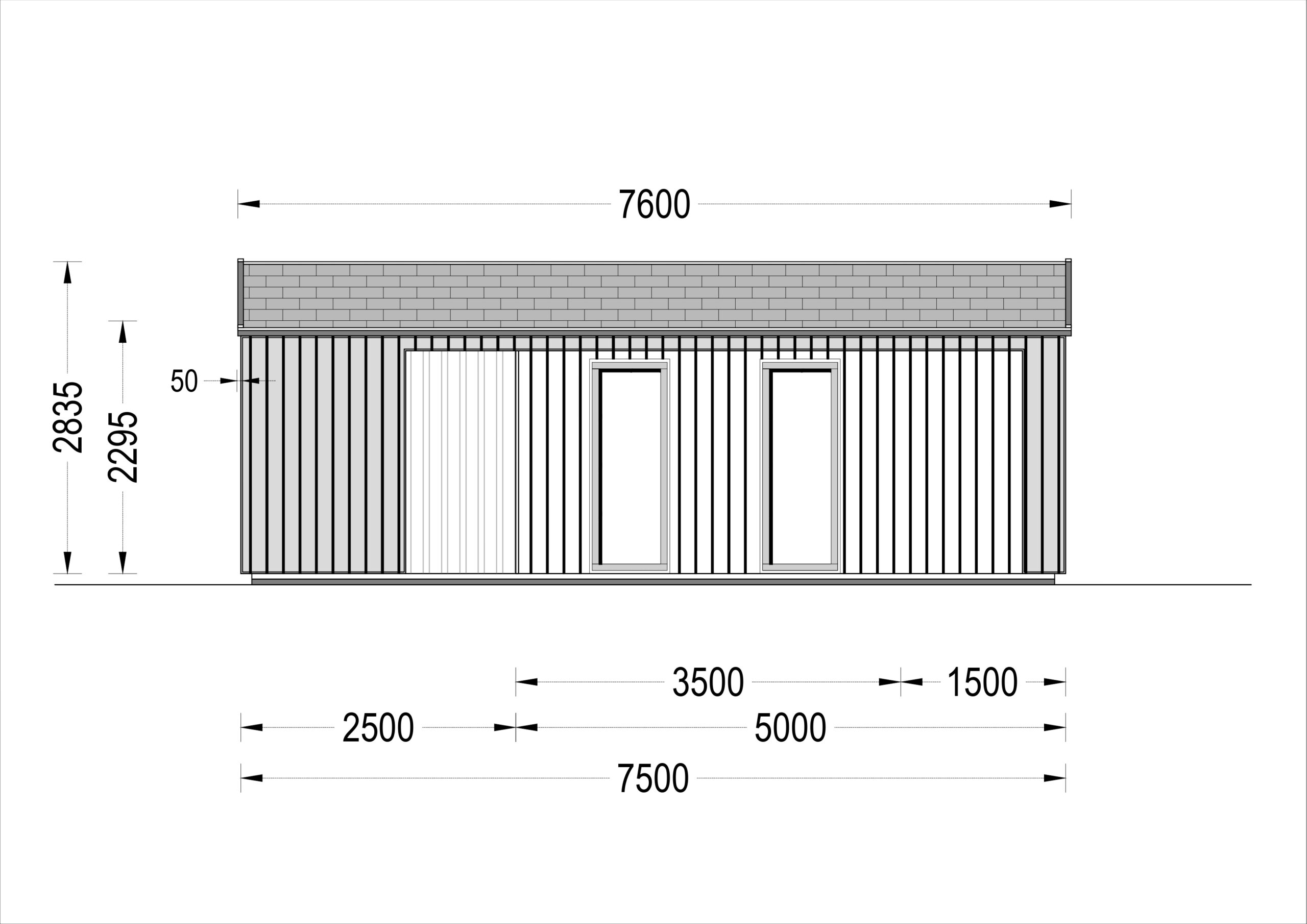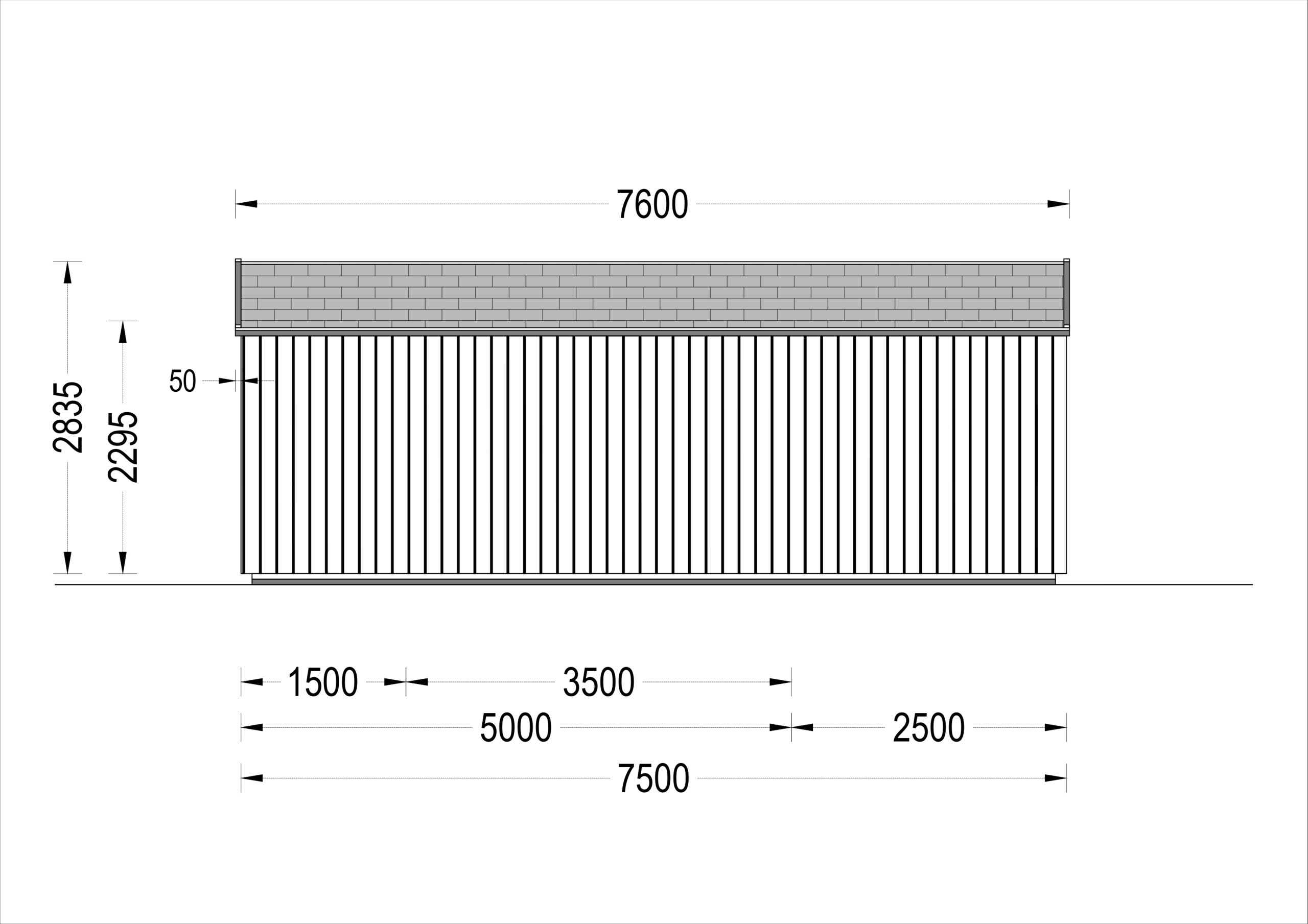 Wir empfehlen eine Holzwand, die mit vertikalen Holzbretter verkleidet ist, um eine bessere Isolierung sowie bauliche und optische Vorzüge zu erreichen. Die Konstruktion wird durch eine zusätzliche Schicht von Holzdielen verstärkt, die zudem die Abdichtung der Wand garantieren. Dadurch können Sie mit weniger Holzverformungen, besserer Stabilität und zuverlässiger Schall- und Wärmedämmung im Laufe der Zeit rechnen. Zudem ist das Gebäude besser vor Wind und Witterung geschützt. Die Konstruktion einer einfachen Blockwand mit Verkleidung ermöglicht es Ihnen, eine zusätzliche Isolierschicht in den Luftspalt zwischen den Verkleidungsbretter und der Holzwand einzubringen, um so mehr Wärme zu erzeugen. Sie verleiht dem Gebäude nicht nur eine völlig andere, moderne Ästhetik, sondern auch mehr Stabilität und Widerstandsfähigkeit. 1 - Ohne Isolierung Der Hauptunterschied zwischen dieser Bauweise und den doppelwandigen Modellen besteht darin, dass bei der einschaligen Bauweise mit Verkleidung die Gefahr von Holzverformungen ausgeschlossen ist. Wenn Sie sich für diese Bauweise entscheiden, sparen Sie viel Geld für die Außenbeschichtung, da diese bereits im Preis enthalten ist. Die Außenverkleidung verleiht unseren modernen Modellen zudem ein besonders elegantes Aussehen. Die 44 + 20 mm Ausführung eignet sich besonders für größere Wohngebäude, da sie eine zuverlässige, massive Mehrschichtkonstruktion bietet (44 mm dicke Innenwand, der Holzrahmen, zwei Schichten Holzlatten und die Außenverkleidung). Einschalige Blockbohlen mit vertikaler Außenverkleidung aus Holz