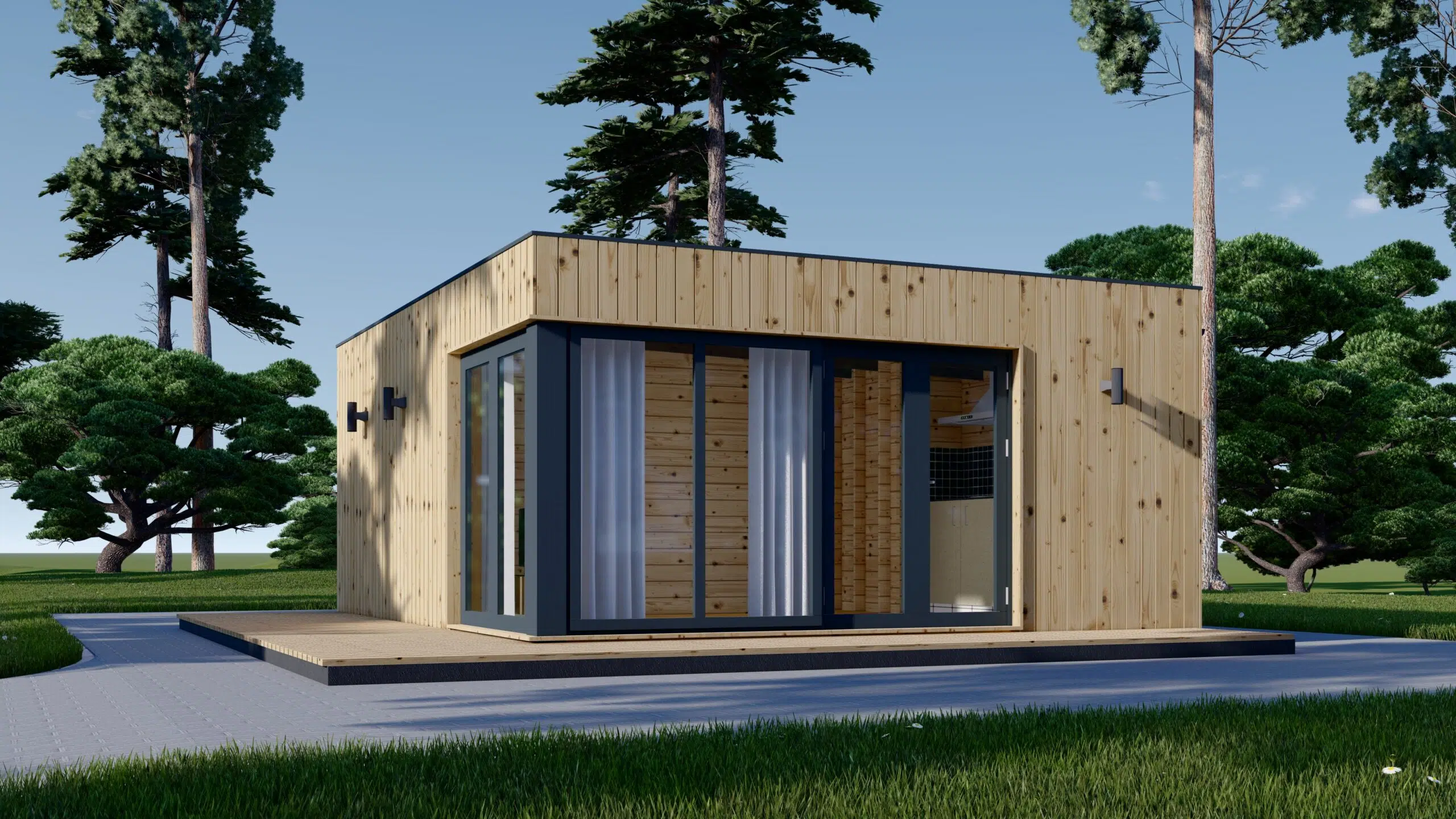 Blockbohlenhaus MILAN Modern (44 mm + Holzverschalung) – 37 m² Isoliert