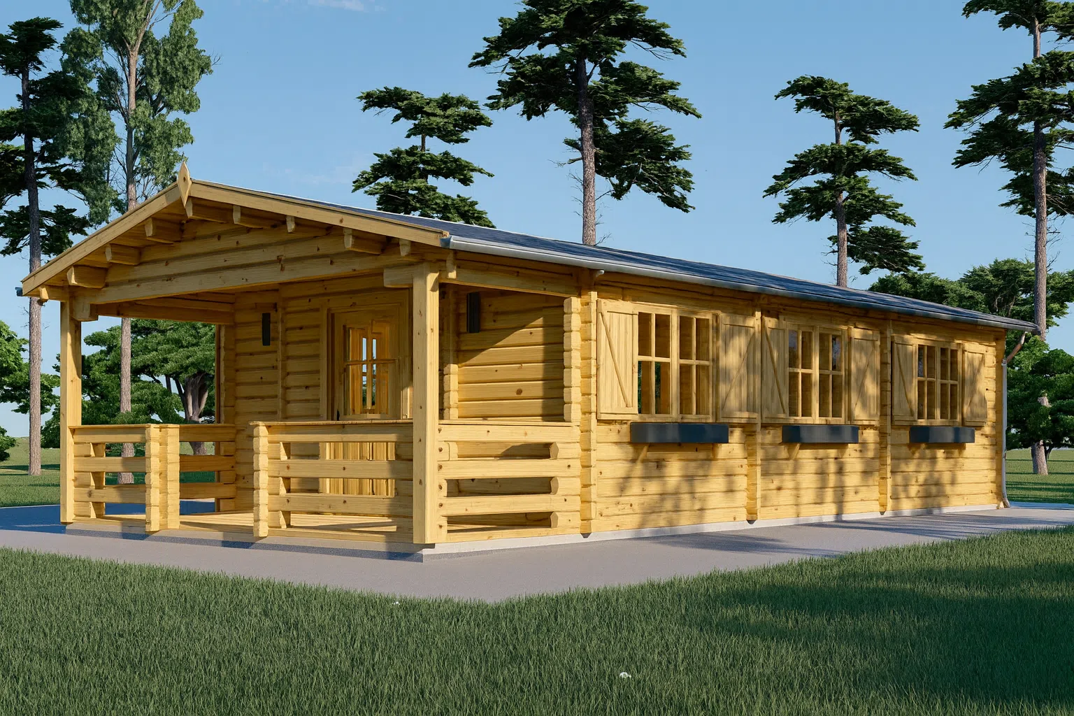 Blockbohlenhaus HANNES 42 m² + 10 m² Terrasse