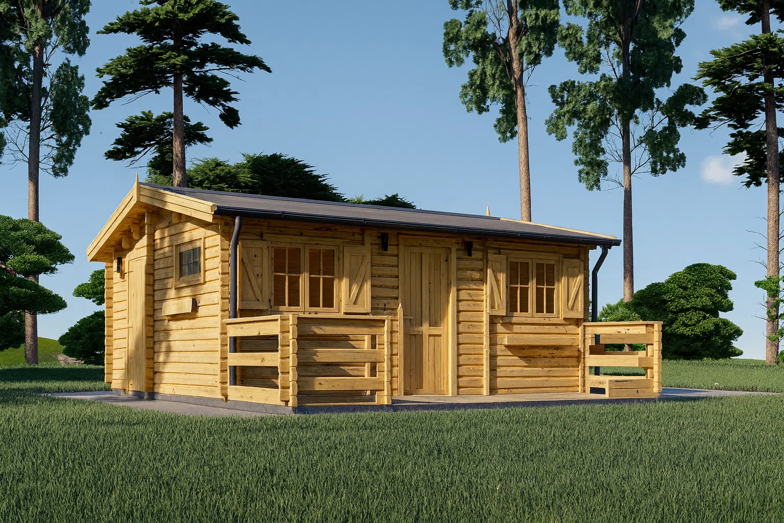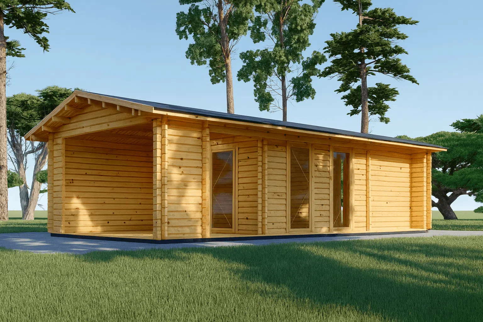 Blockbohlenhaus ARMIN (44+44 mm) · 31 m² · Isoliert · Pultdach