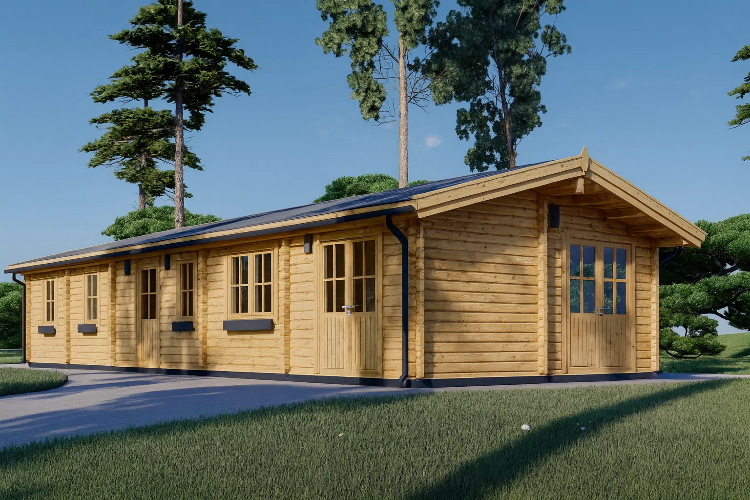 Blockbohlenhaus GOSAU (66 mm), 6×15 m, 90 m²