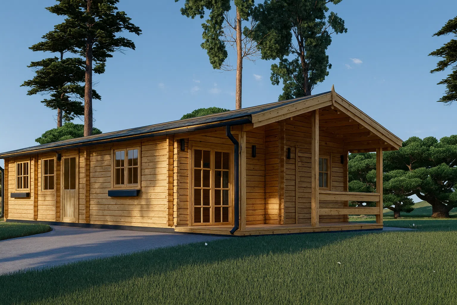 Blockbohlenhaus HANNES 42 m² + 10 m² Terrasse