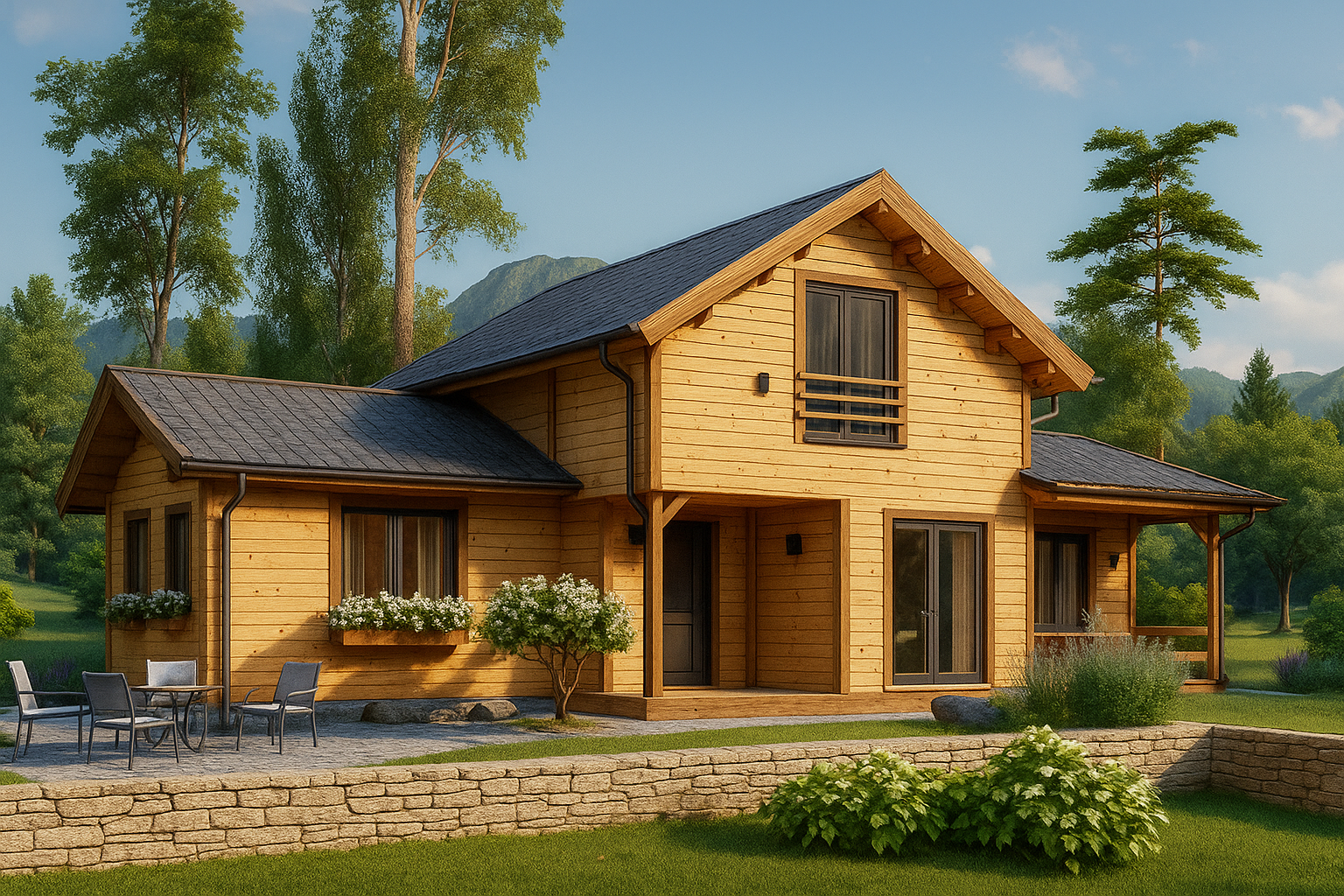 Das Holzhaus ADRIAN ist die perfekte Wahl für kleine bis mittelgroße Familien oder Paare, die ein funktionales und gemütliches Zuhause suchen. Es vereint modernes Design mit hohem Wohnkomfort und eröffnet die Möglichkeit, wertvolle Momente gemeinsam in der Natur zu verbringen – ganzjährig und unabhängig von der Jahreszeit.
