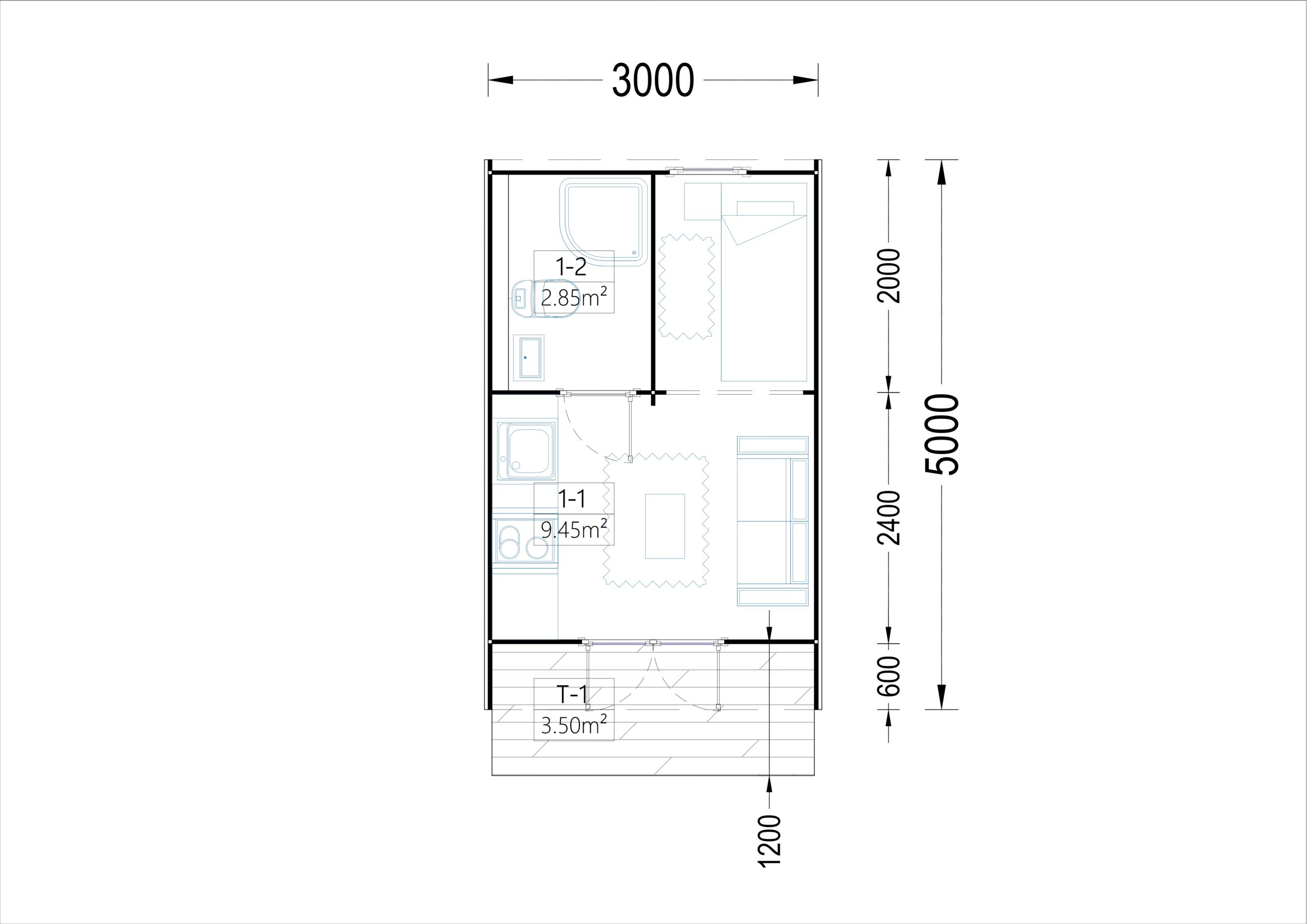 - Es besteht die Möglichkeit, bei Bedarf ein separates Schlafzimmer einzurichten. Zudem bietet das Gartenhaus ein eigenes Bad, um den Komfort zu garantieren.