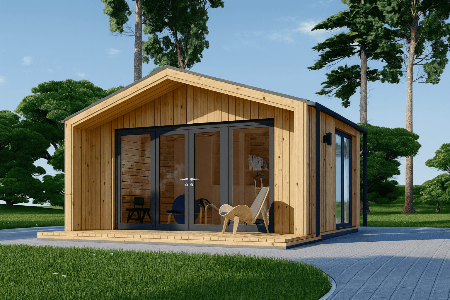Das isolierte Gartenhaus ELSA verbindet zeitgenössisches Design, hochwertige Materialien und eine effektive Wärmedämmung – ideal als Home-Office, Atelier, Hobbyraum oder privater Rückzugsort.