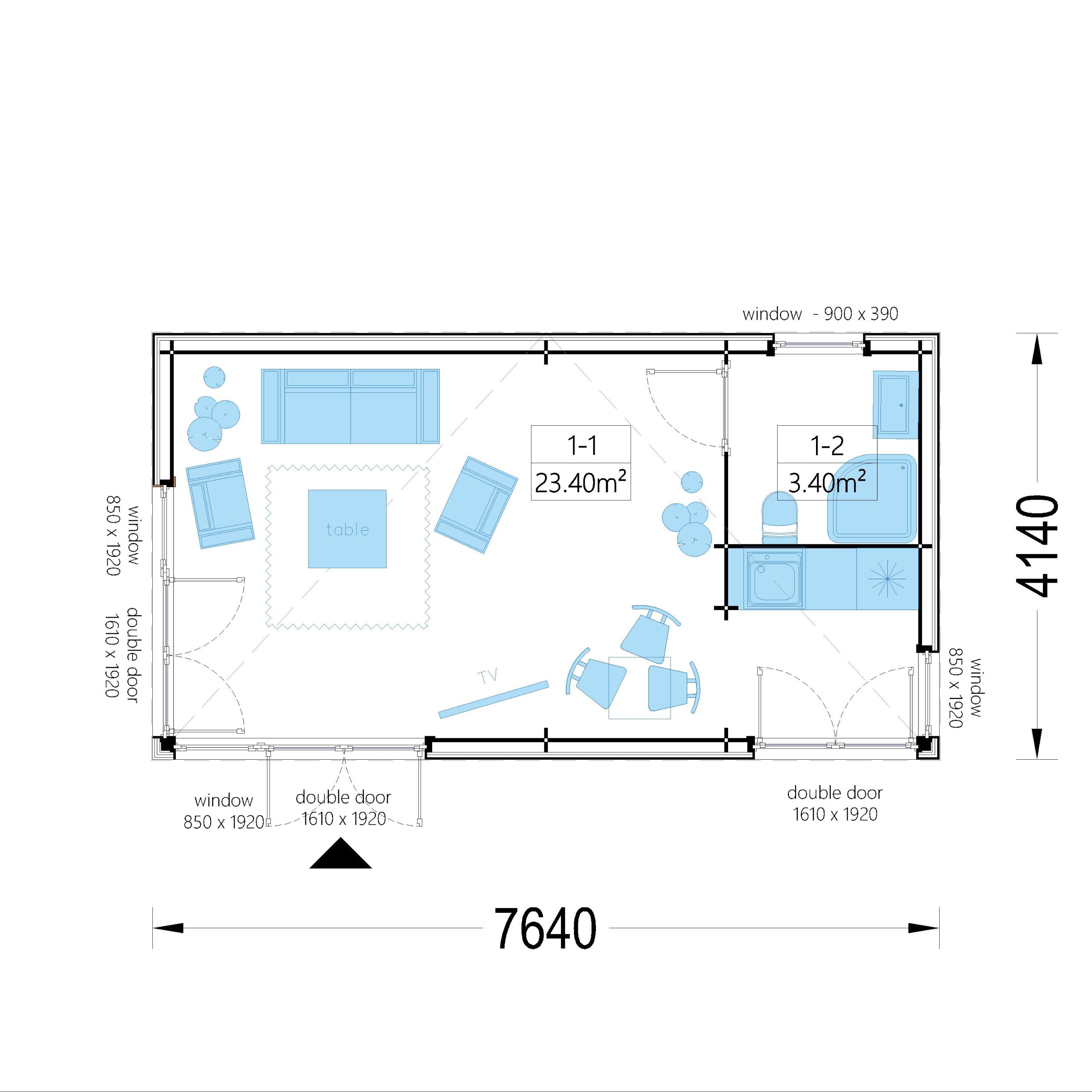 Mit 30 m² Wohnfläche, einer robusten 34-mm-Wandstärke und einer hochwertigen Extra-Isolierung ist dieses Modell ideal als Gästehaus, Home-Office, Atelier oder komfortabler Rückzugsort – ganzjährig nutzbar, auch im Winter.