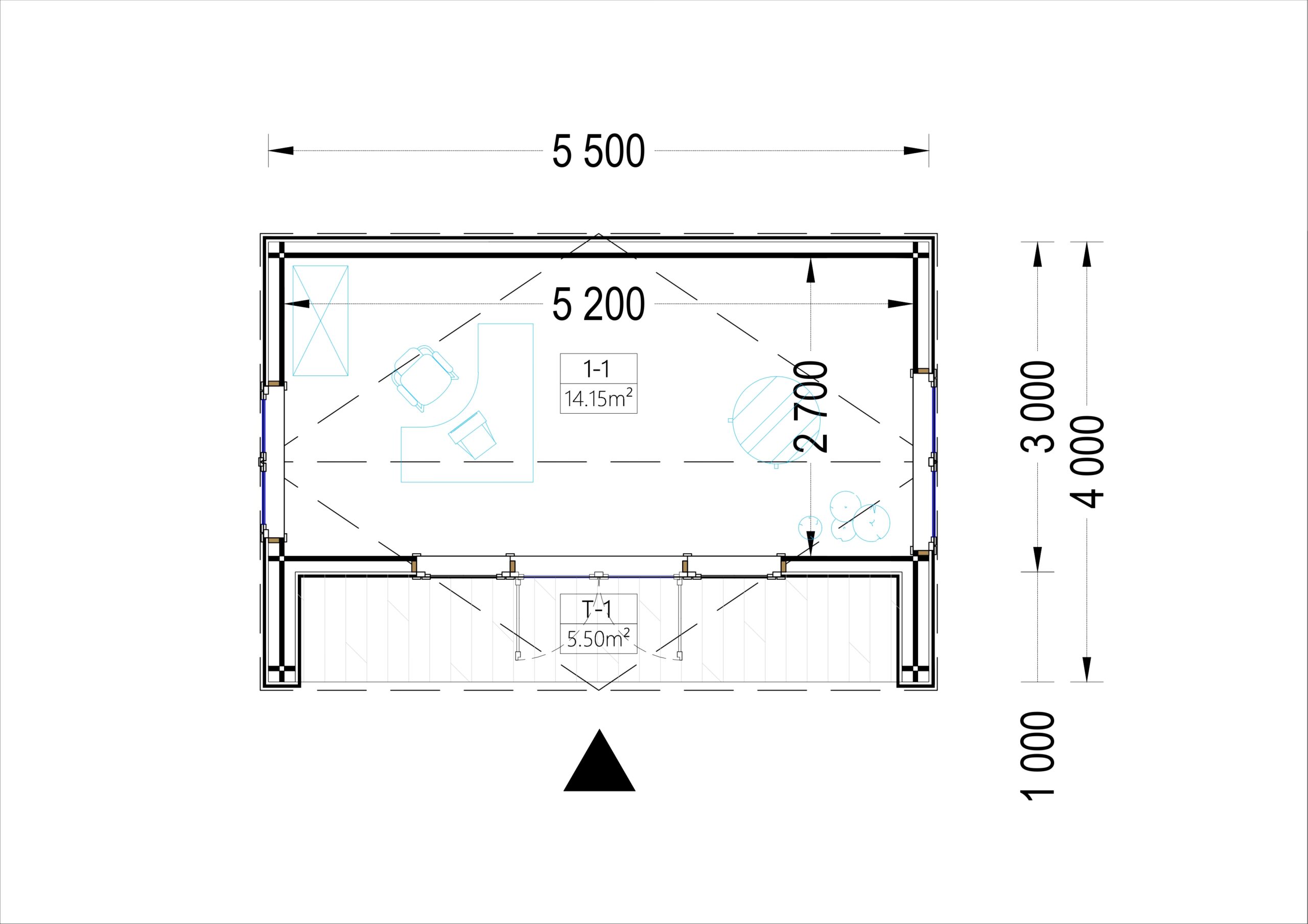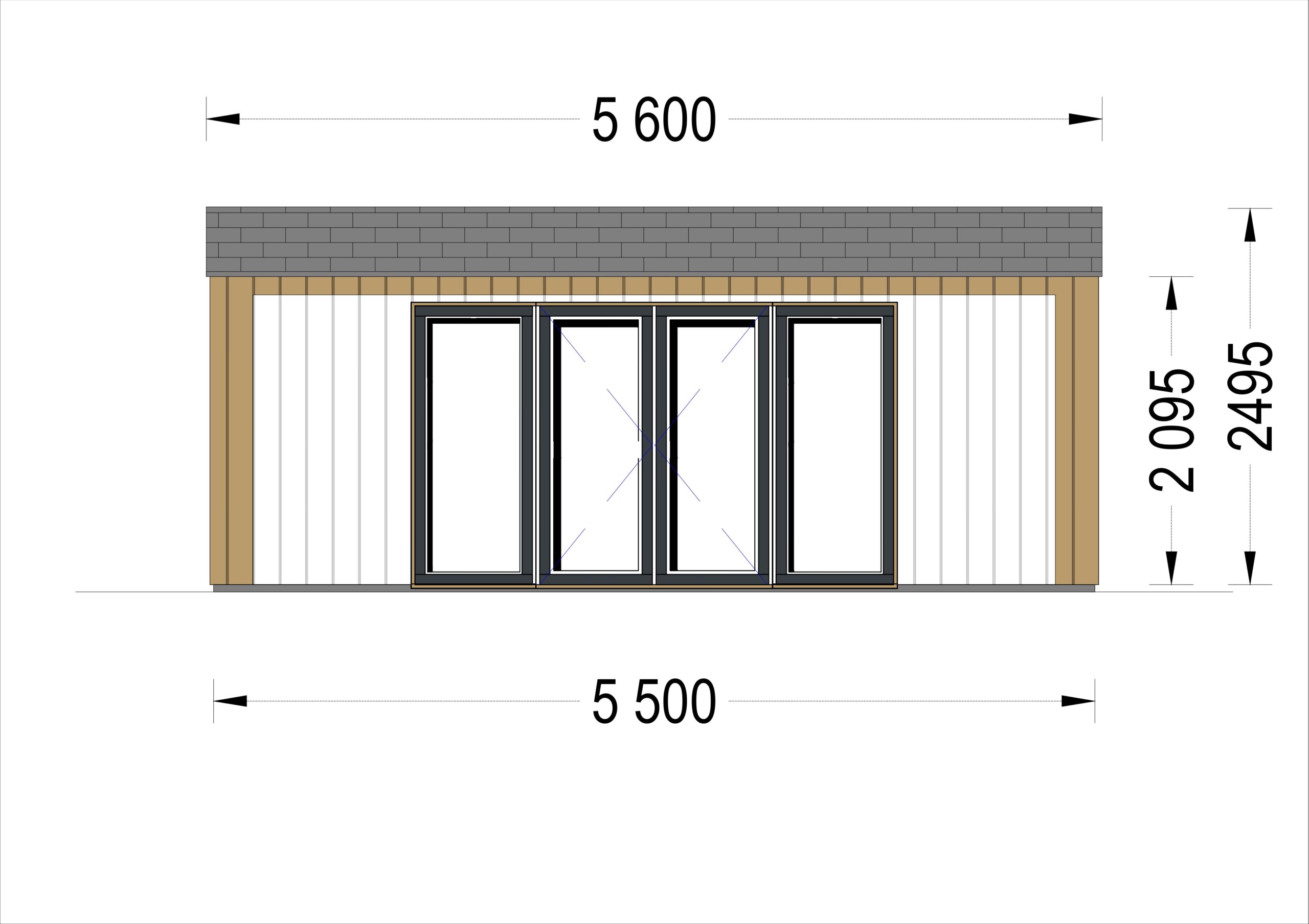 Gartenhaus TAURUS (34 mm + Holzverschalung Isoliert), 5,5×4 m, 16,5 m²