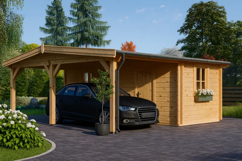 Carport aus Holz für 1 Auto mit Schuppen (44 mm), 5×6 m