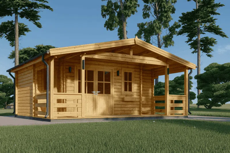 Blockbohlenhaus mit Terrasse LILLI, 32 m² + 20m² Extra Isoliert