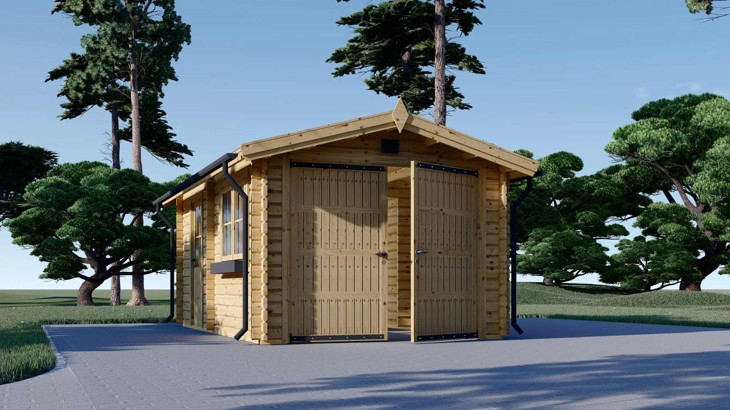 Holzgarage mit (44 mm) 4×6 m mit Doppelcarport 5.5×6 m