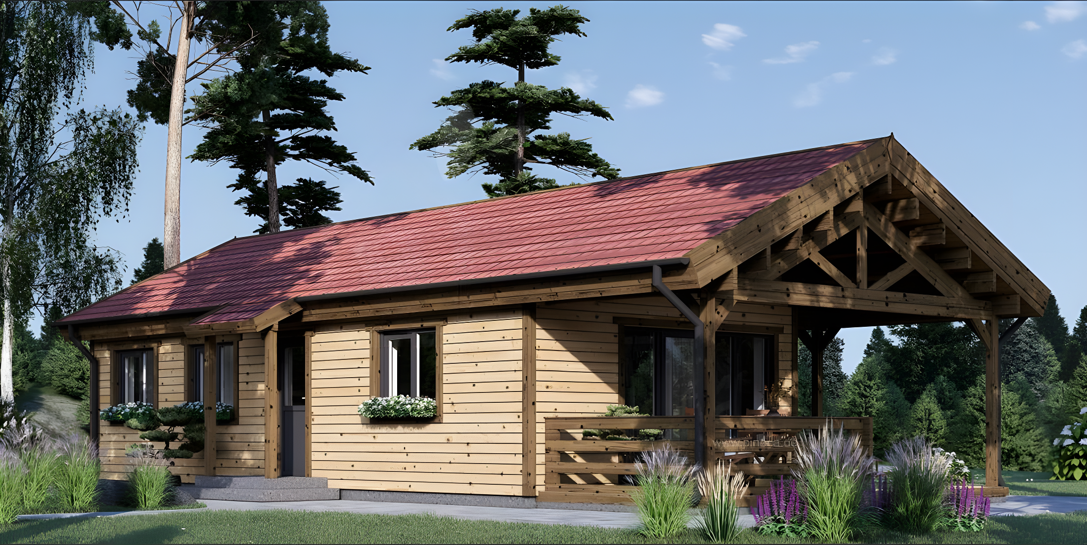 Holzhaus TRAUNSEE (Isoliert, 66 mm + Holzverschalung), 46 m²