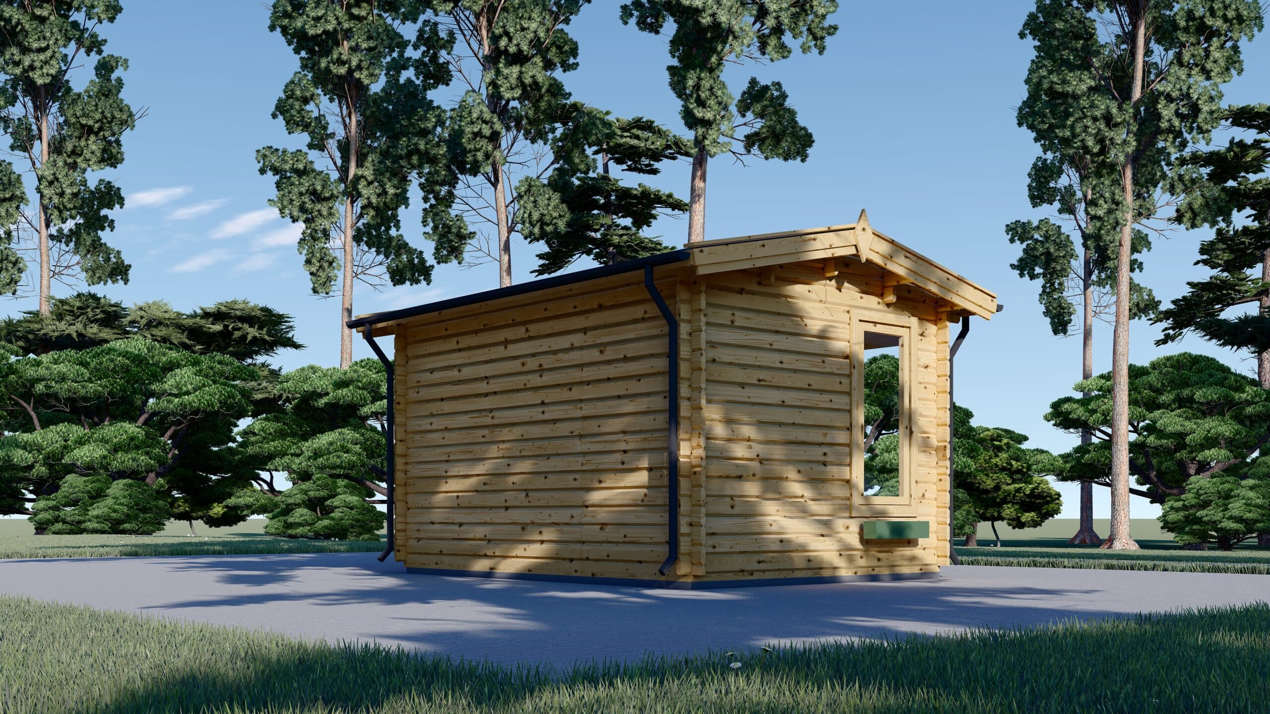 Ein weiteres Highlight dieses Modells ist der stilvolle Dachüberstand, der nicht nur einen zusätzlichen Schutz vor Witterungseinflüssen bietet, sondern auch die Möglichkeit schafft, den Innenraum zu erweitern. Sie können den Außenbereich nutzen, um im Schatten zu entspannen, Ihre Gartenmöbel zu platzieren oder gemütliche Stunden im Freien zu verbringen.