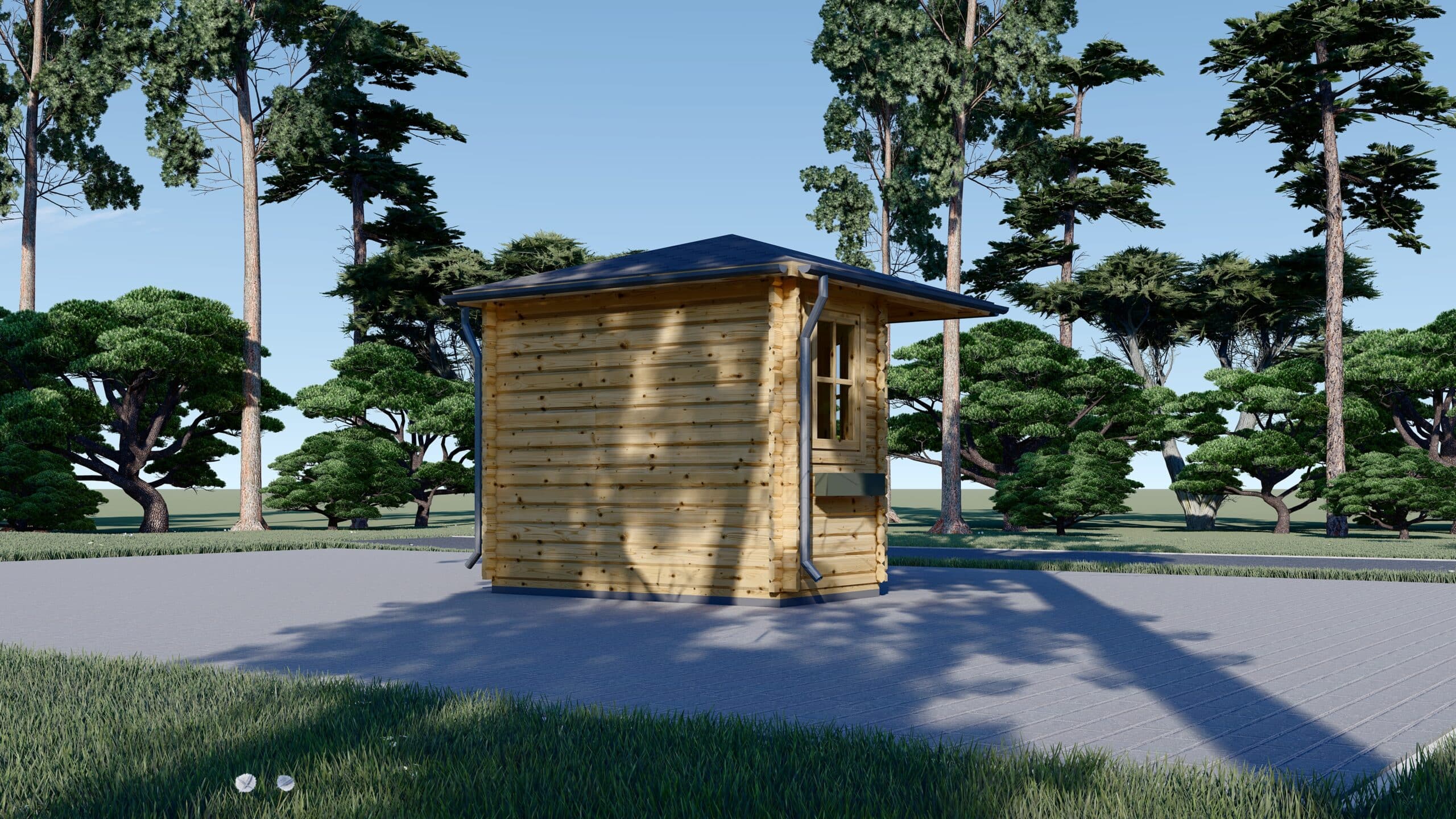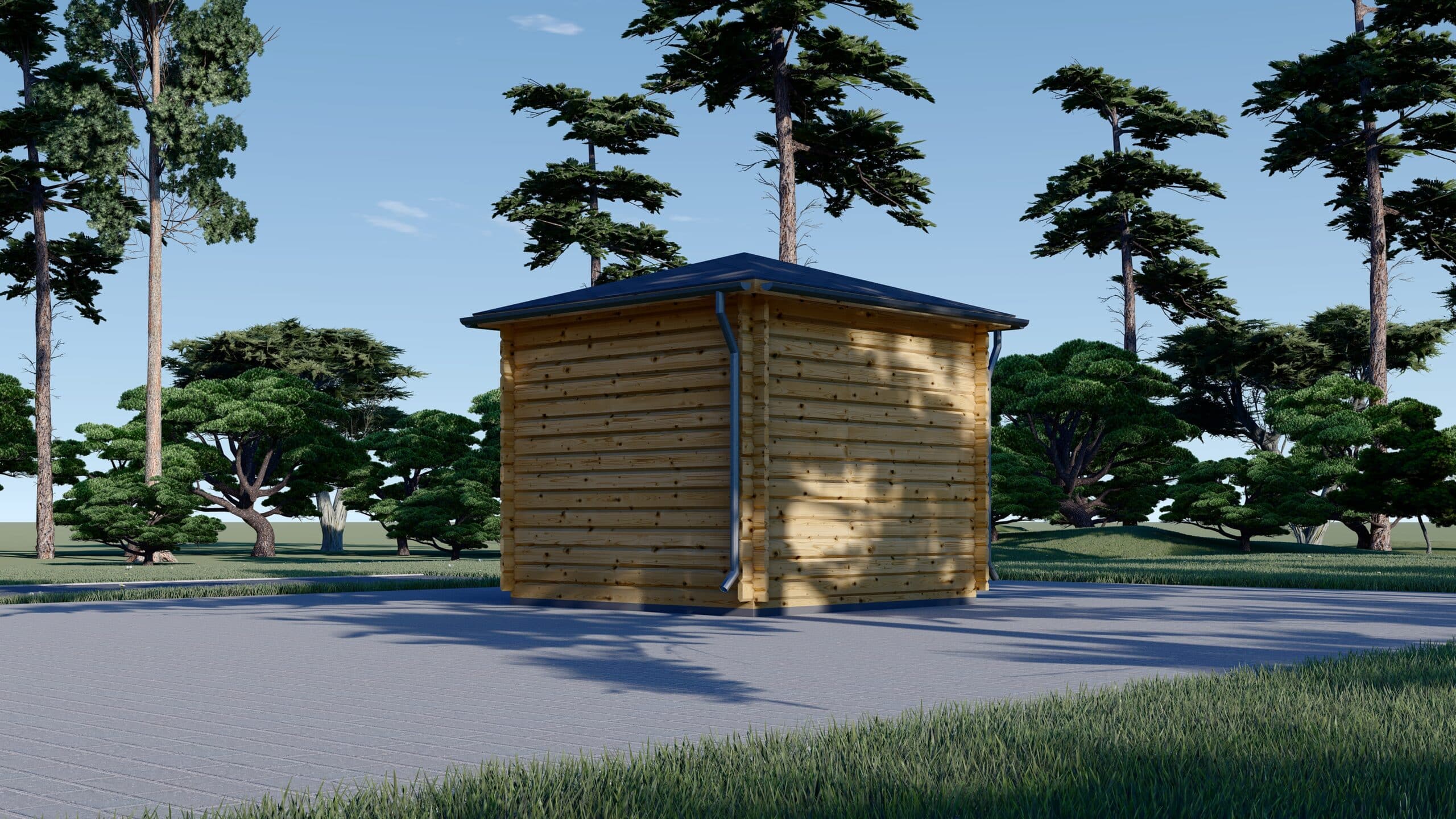 Mit einer kompakten Fläche von 9 m² bietet dieses Modell ausreichend Platz für Werkzeug, Gartengeräte und Möbel, aber auch einen gemütlichen Raum zum Entspannen und Genießen.