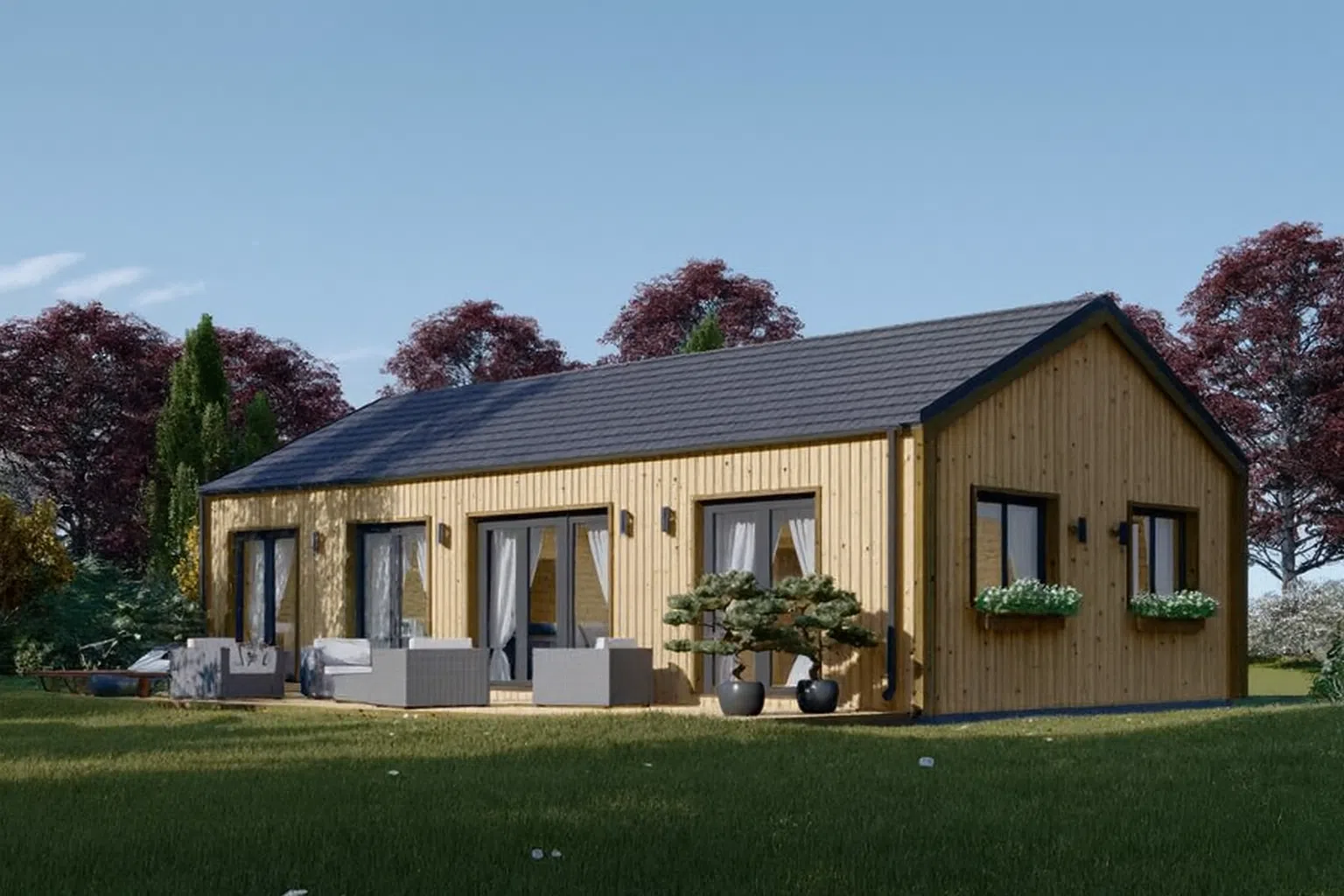 Blockbohlenhaus MILAN Modern (44 mm + Holzverschalung) – 37 m² Isoliert
